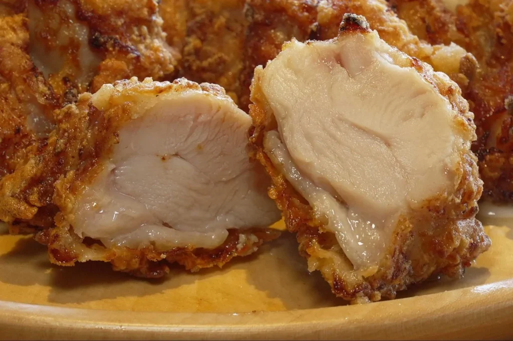 鶏のモモ肉を自家製甘酒の塩麹で一晩漬け込み、柔らかく仕上げています。