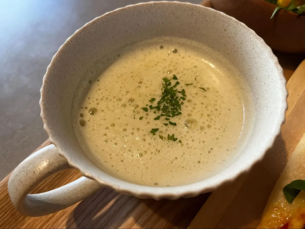 豆乳と少しの塩、グルテンフリーのコンソメとしょう油が使われています。やさしい素材の甘さが口いっぱいに広がります。