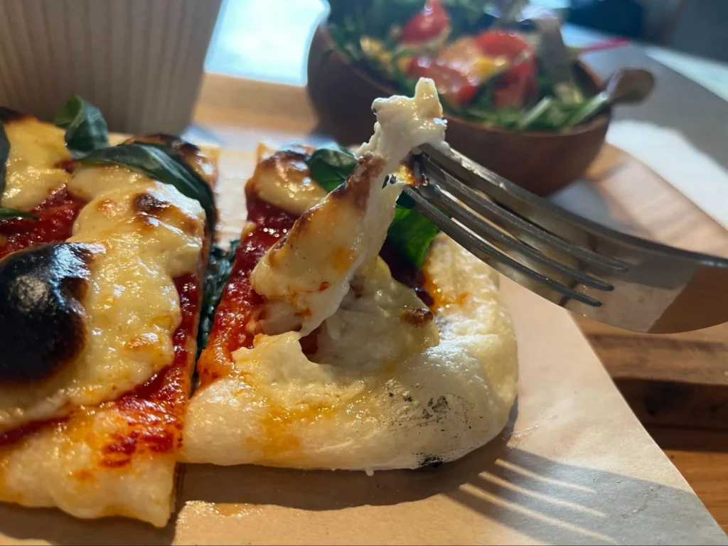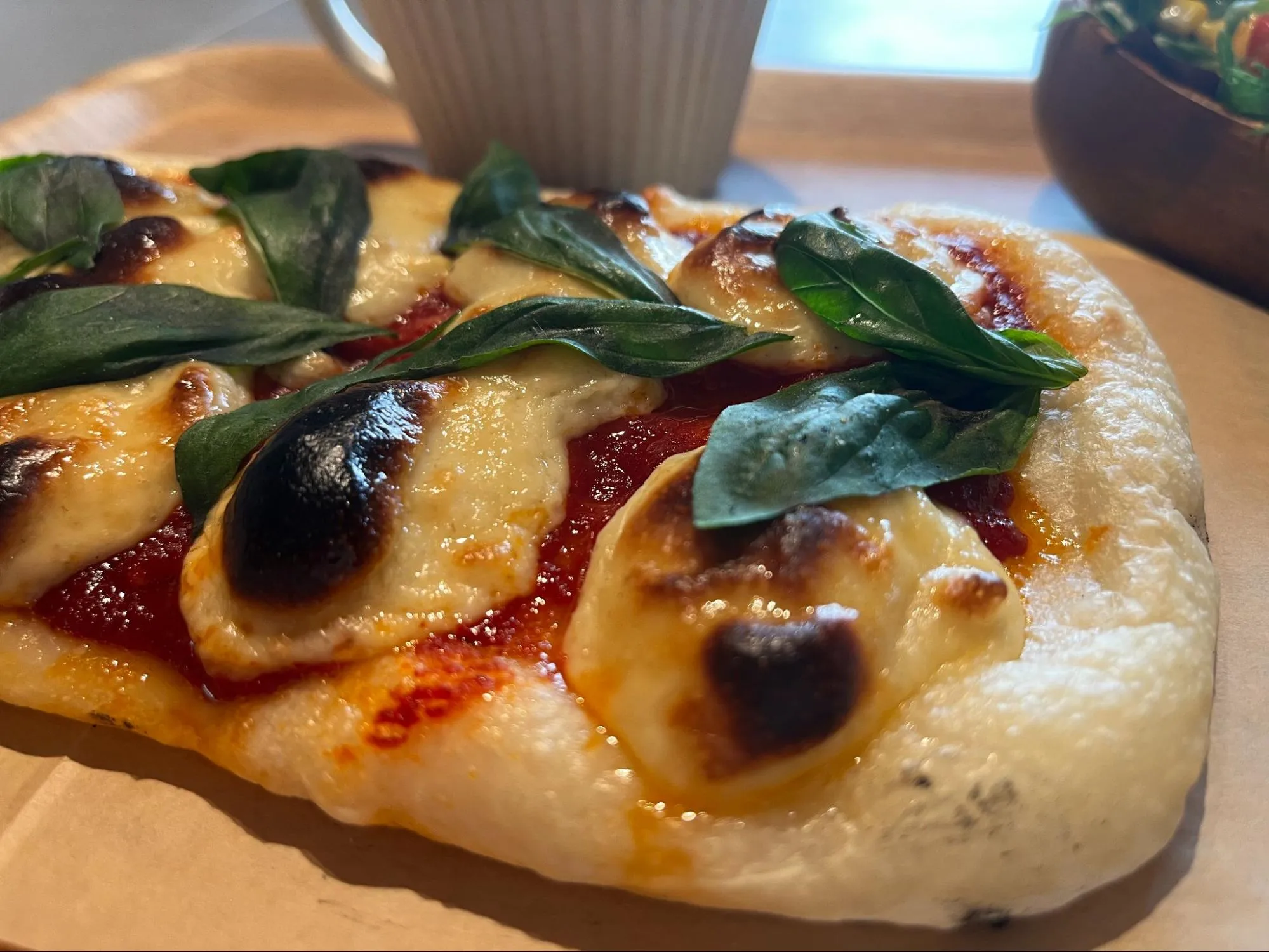 ピザの王道、マルゲリータ。生地の上でトロリととけるチーズが何でできているのか、気になって仕方がありません。