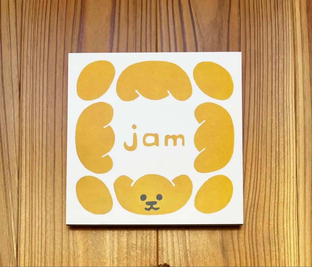 ピーンと立ったジャムちゃんの耳にも、パンにも見えるマークがとってもキュート!