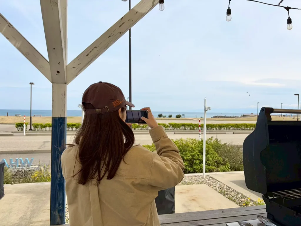 お肉が焼けるのを待ちながら、のんびり海を眺めたり写真を撮ったり。「この焼き加減どう?」「そろそろ食べれるかな!?」と、ワイワイしながらBBQを楽しみました!