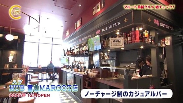 富山駅前「MAROOT」内に2025年12月にオープンした英国スタイルのパブ「HUB(ハブ)」。店内は異国情緒あふれる空間で、一歩足を踏み入れると、まるでイギリスの街角に迷い込んだかのよう!