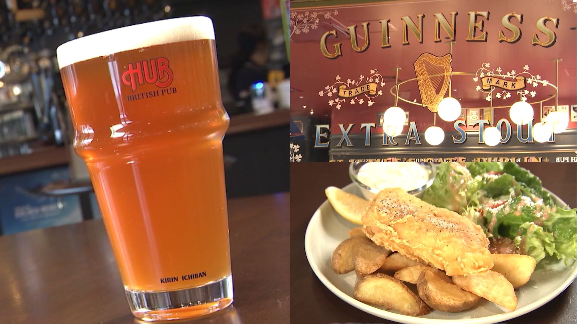 絶品フィッシュアンドチップスに合わせたいのが、季節限定のオリジナルビール「ハブエール」。英国伝統のホップを使った、本場さながらのエールビールです。