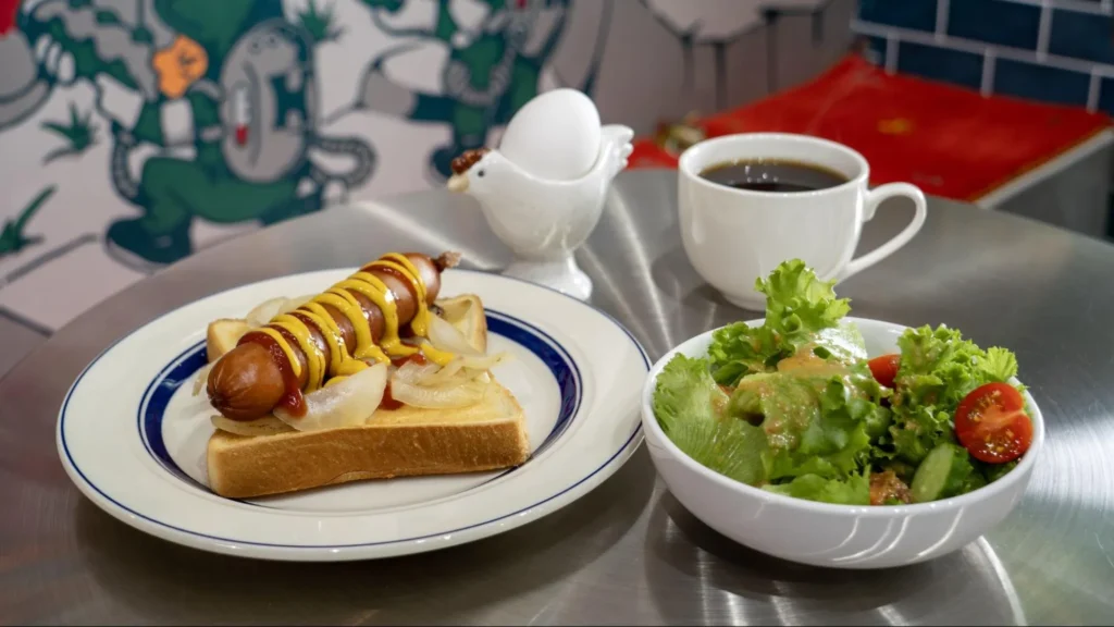 オージースタイルのホットドッグが平日はワンコインとお得に、さらに週末はモーニングセットとして提供しています。